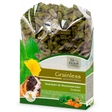 Кожен вихованець знайде для себе щось смачненьке: тут хміль і кульбаба, трилисник та фенхель, виноград, календула, а також чорниця. До смачних овочів та фруктів, насіння та ягід, довговолокнистих трав, доданий ще один незвичайний інгредієнт - хрусткі оздоровчі палички, завдяки яким тварина матиме змогу відчути зовсім нові смакові відчуття, що дозволить внести деяке різноманіття до повсякденного раціону.