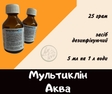 Фармацевтичні властивості:Засіб дезінфекційний «мультиклін аква» – комплексний миючо-дезінфікуючий засіб. препарат зберігає свою активність при інтенсивному світлі, при використанні жорсткої води, в присутності органічних матеріалів (залишки корму, тваринні виділення та ін.)Діє бактерицидно (staphylococcus aureus, streptococcus faecalis, pseudomonas aeruginosa, e. coli, klebsiella pneumonia, proteus mirabilis, listeria monocytogenes, mycoplasma spp.), фунгіцидну (candida spp., aspergillus spp., fusarium spp., penicillium spp.), і віруцидну (newcastle disease virus, reovirus, rotavirus, coronavirus, paramyxovirus, poxvirus, orthomyxovirus, pestivirus).